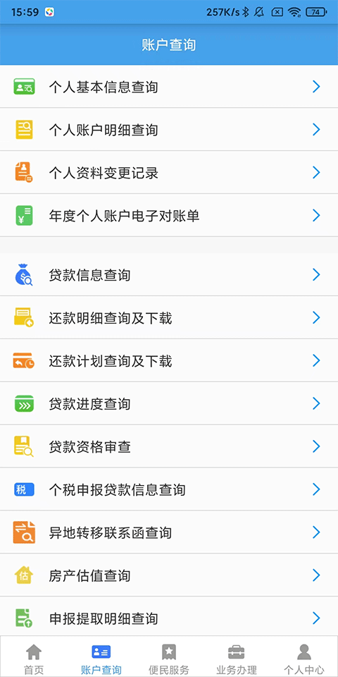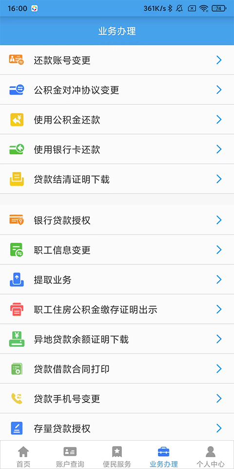 5、个人业务查询,详细查看公积金账号提取、贷款等明细信息。
