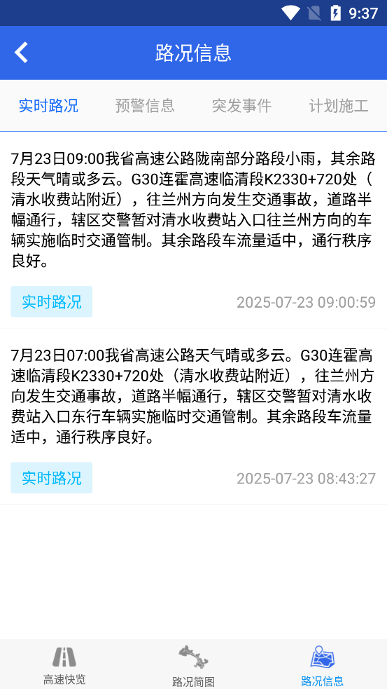 4、更有甘肃高速路况直播信息,让你在出发前可以先了解到每条高速的情况