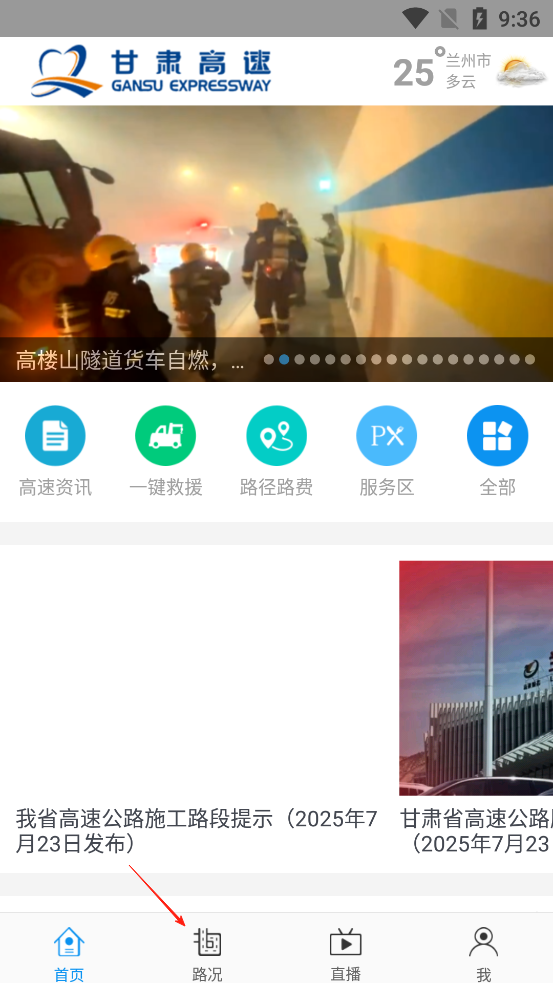 1、打开甘肃高速App,点击路况