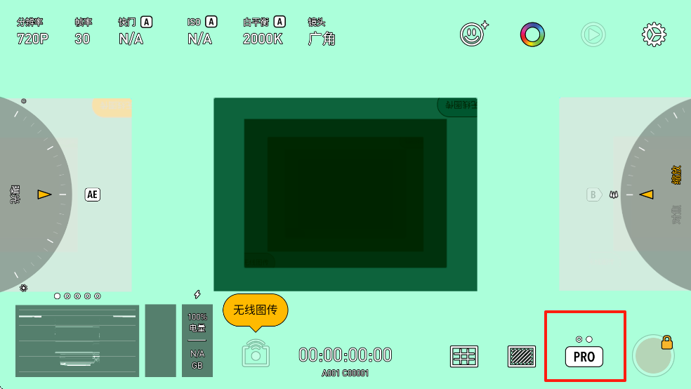 · PRO 专业模式:这个模式为专业的视频拍摄者而生。所有的相机数据,以及控制按钮,都被非常科学地放置于界面上。你想使用的功能,永远在眼前。