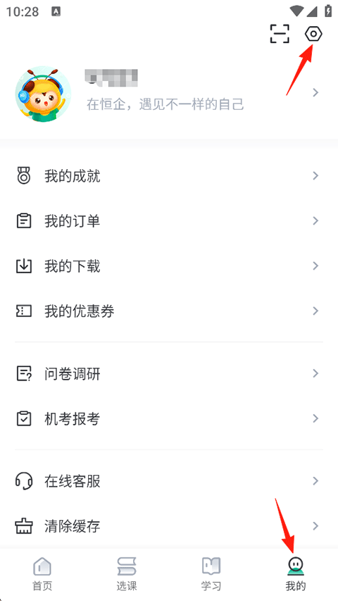 1、打开恒企网校APP,点击我的-右上角设置图标;