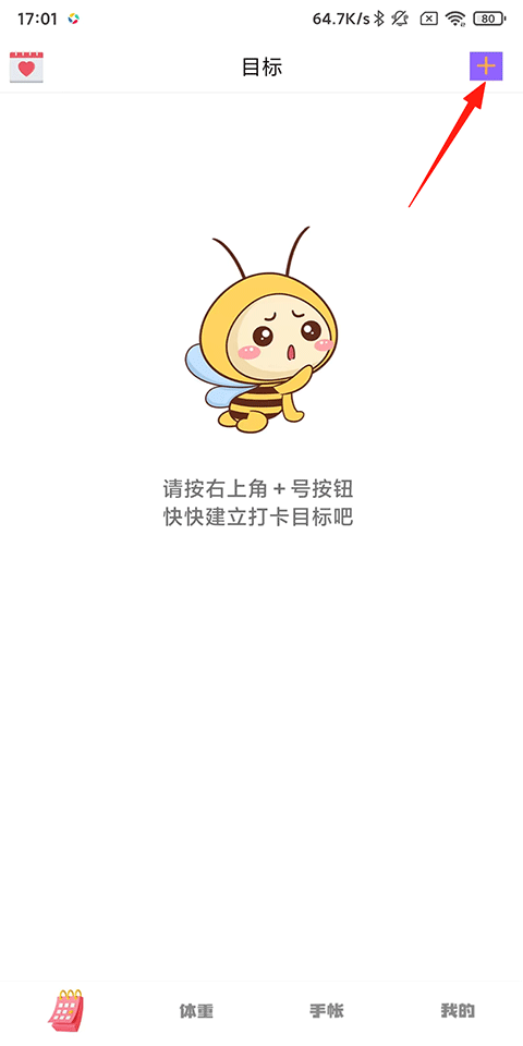 1、打开小日常目标打卡APP,点击右上角的添加按钮;