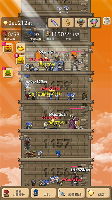 3、购买装备,我们是一定要给自己的小人购买装备的,比如奋斗药水等等,这样玩家才能快速的获得这些攻击的胜利,不然可能一个楼层玩家需要刷很久很久,这样就很烦躁了