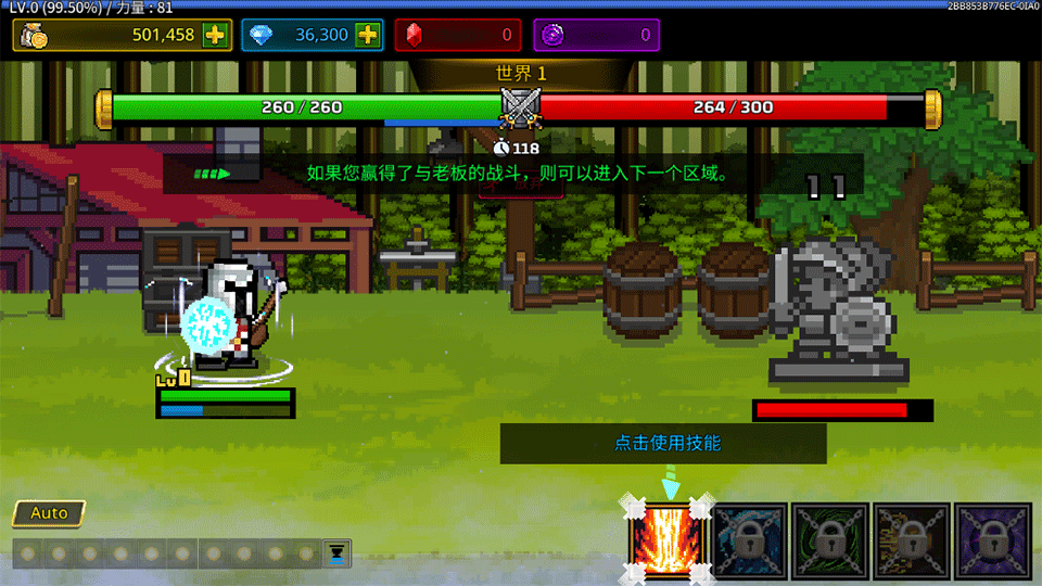 2、点击挑战Boss,解锁技能后可以选择使用技能和Boss战斗。