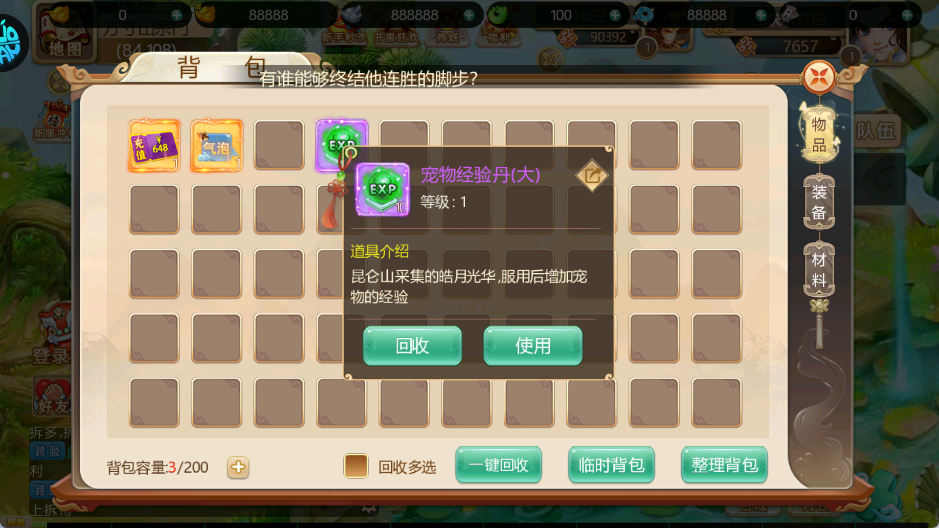 3、登录送宠物·孙悟空,送仙童·如意宝儿,送3天时装皇庭贵族、送气泡·火辣辣!