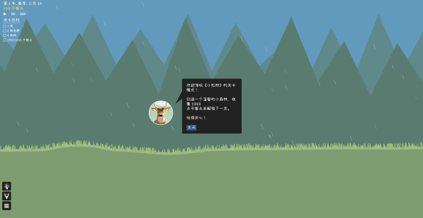 19.百年树人,世纪之林,绿意千年:拥有一片100年,500年,1000年历史的森林。左上角三个三角的加速按钮,按了后时间变化不大,但钱会刷的快一点。反正总会完成的,建议电脑开着,直接去做别的事情(摆烂成就)