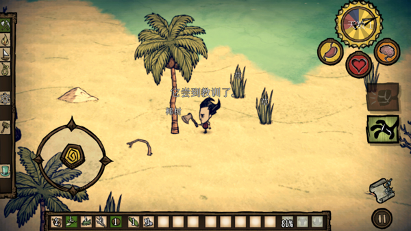 4、玩家需通过割草、砍树来获取材料;