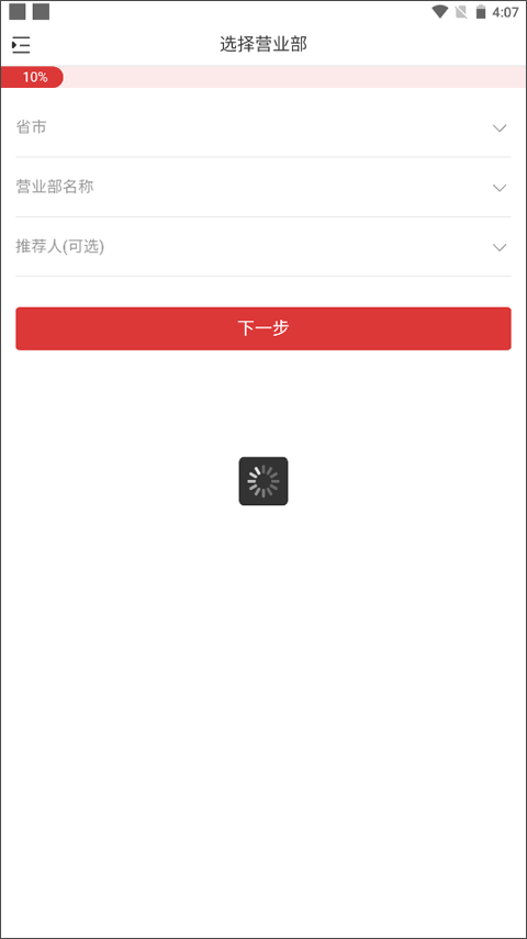 3、开始选择你的营业部,包含省市、营业部名称、推荐人,进入下一步;