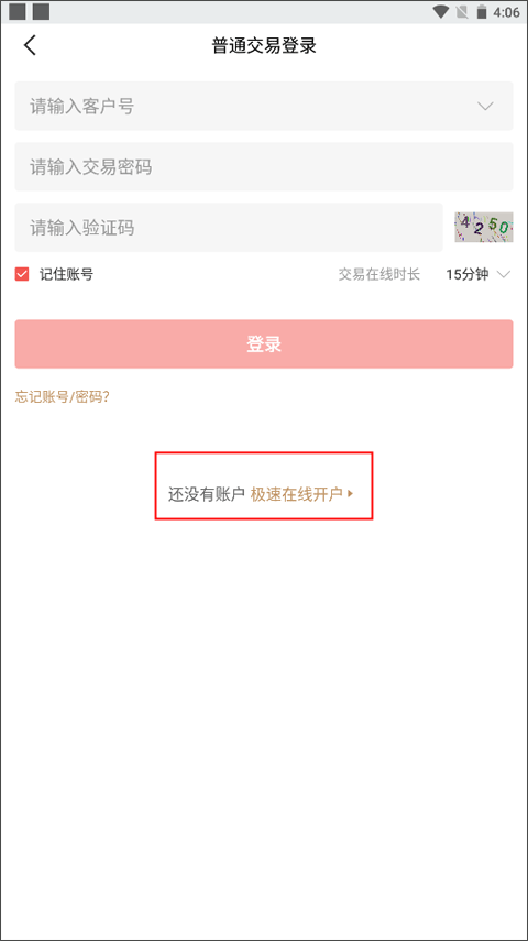 1、用手机号和验证码登录账号,登录成功后如果想进入自己的银行账户系统,则需要客户号和交易密码。如果还为开户的话,点击下方的“极速在线开户”按钮;