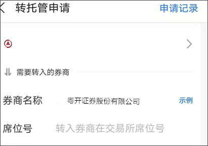 在转托管申请页面:选择转托管基金、输入转出份额、券商名称填写粤开证券股份有限公司,席位号:深圳:233900;上海:23255