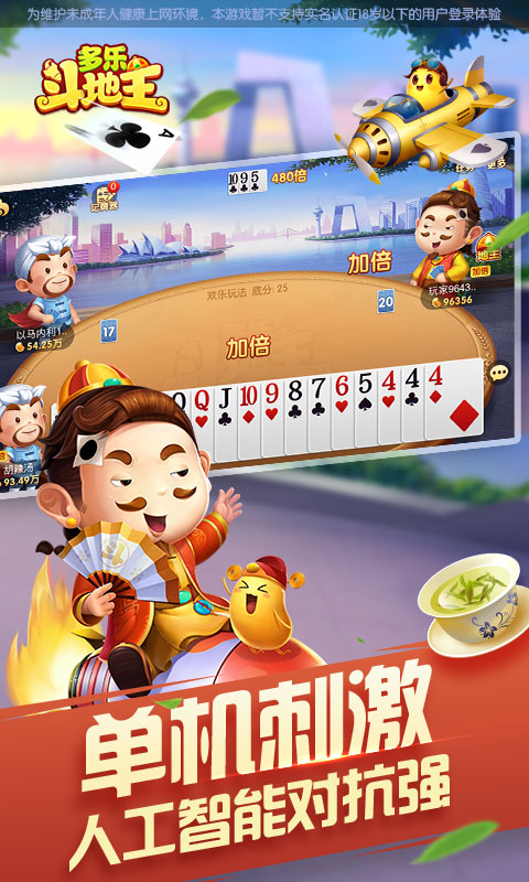 经典叫分,原汁原味游戏体验;抢地主玩法,炸弹刺激翻倍爽;完美单机,无流量也可随时玩,超强人工智能对抗强。