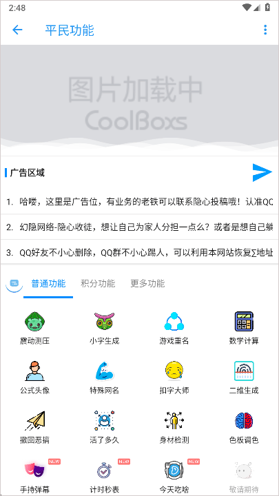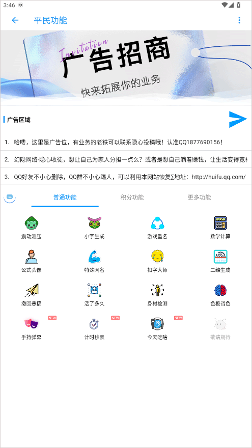 2、在首页,点击平民功能,您可以发现很多的实用功能