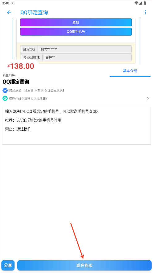 2、需要购买开始查询。