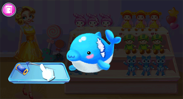 1、进入游戏后,先要修好玩具,根据提示,移动修补物品;