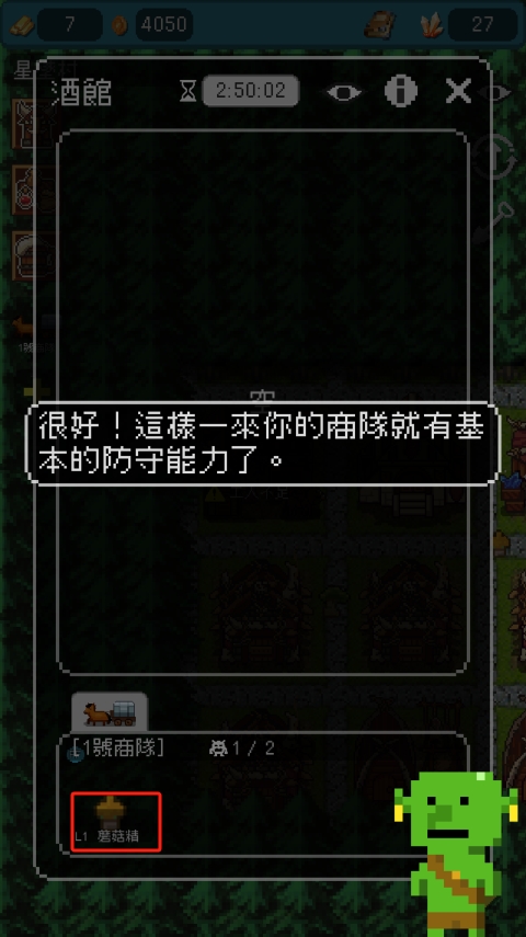 4、有了贵重物品后,为了防止外来入侵者来抢劫,你需要去酒馆招一些小怪来守护你的商会,雇佣一个蘑菇精就好啦。