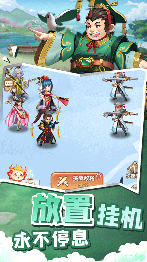 萌将春秋ol是一款Q 萌画风的三国放置策略手游,采用了q版卡通的画风设计,把武将的风格表现得淋漓尽致,还提供了海量的三国英雄,你可以通过传统卡牌游戏的抽取方式来获取它们为你征战。在萌将春秋ol游戏中玩家需要招募高品质武将,并通过武将升级、星级强化、阶级晋升、装备升级等方法来提升战斗力,在关卡中,通过合理搭配武将的阵营、阵容、站位来击败所有的敌人。