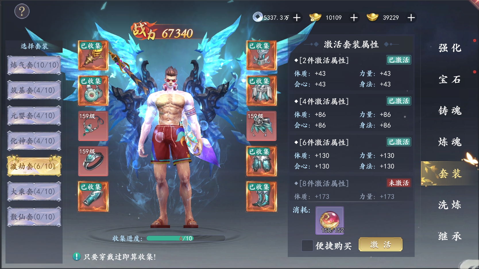 凑齐套装,只要穿戴过即可激活。激活后可以通过材料来培养。材料可以通过活动和商场购买获得。