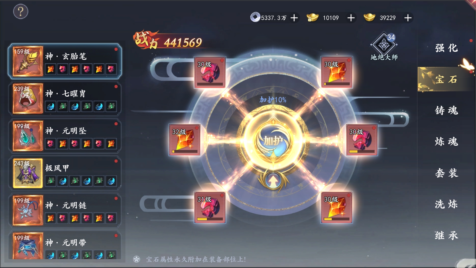 小技巧1:宝石升级可以尽量平均来提升宝石等级,资源最大化提升战力