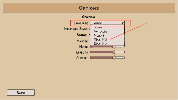 2、点击language下拉,选择简体中文;