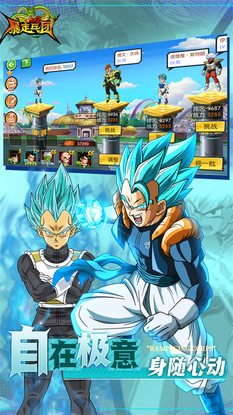 每位角色拥有独特技能,通过“种族特性”“缘分组合”激活强力羁绊效果。例如,孙悟空与贝吉塔合体可触发“悟吉塔”形态,大幅提升战斗力。