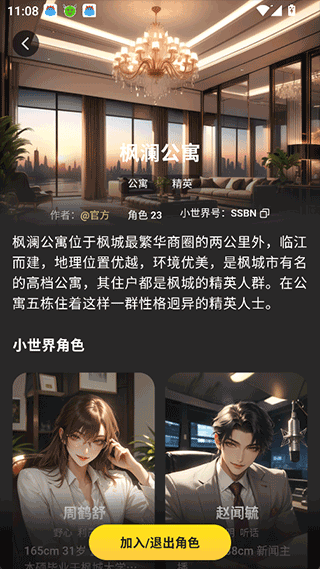 3、进入小世界界面下可以加入角色与别人创建的ai聊天场景进行聊天