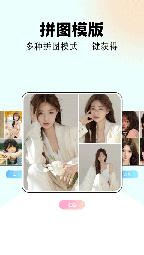2、拼图:支持多种拼图模式,包括自由拼图和网格拼图,满足用户不同拼图需求。