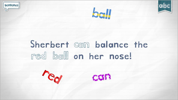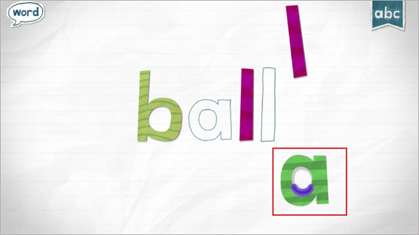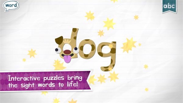 2、孩子拖动字母到正确位置时,字母会变成活泼的小动物并发出读音,拼写完成后单词会做鬼脸,强化记忆。