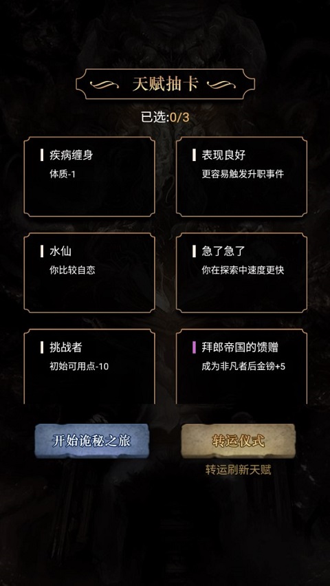 2、不同的属性可以自由选择加点,搭配各种各样的奇异天赋,让你每次的人生都不重样,达成各种成就。