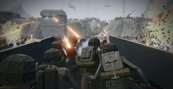 画面方面,游戏采用了卡通和写实结合的风格,人物造型有点大头娃娃的感觉,但装备都是严格按照二战真实设计的,细节做得很到位。整体光影效果还有点怀旧风,感觉很有年代感。
