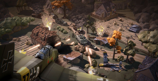 1、游戏采用低多边卡通风格,提供多种经典的枪械、坦克、载具、战机。
