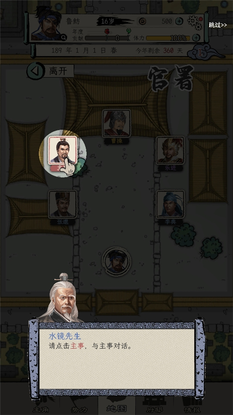 5、同僚篇1:本游戏最重要的之一,没同僚游戏没法玩。要求同势力武将友好60,官邸对话给需求就可以加入了。做任务时候可以出列帮忙,5品演义必须1任务3同僚才能完成。当太守时候可以选择每年将你的同僚拉到你的城帮忙。