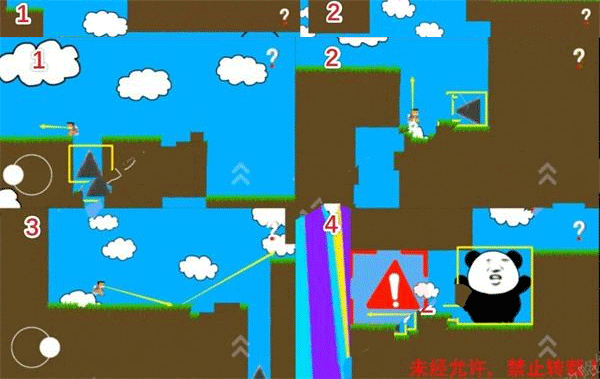 图2在靠左的位置落下,之后迅速的上升躲避三角机关。