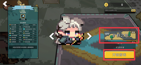 2、点击角色后,然后点击右下角开始游戏,同时还可以在这里切换游戏地图