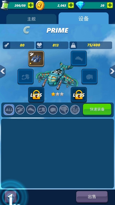 5、通过以上的实力提升方法,基本掌握了该游戏的诀窍,期间你还可以通过装备“设备”,进一步强化战机实力。