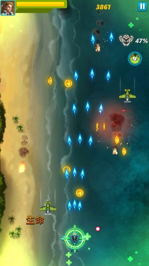 2、收集硬币,物品以升级飞机。