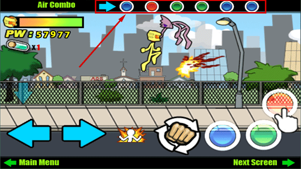 3、不过游戏内是有连击技能的,只要根据按钮的顺序来即可放出技能,例如跳+踢则可使用飞踢,而下图则是高难度连击,但更炫酷,伤害更高;