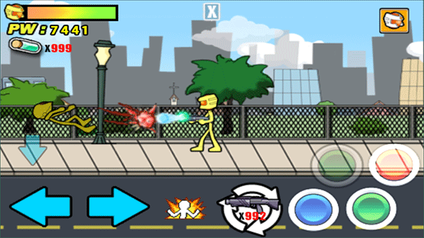 3、漫画画风,通过火柴人的简单风格,保证游戏动作的流畅性,打击感超强。