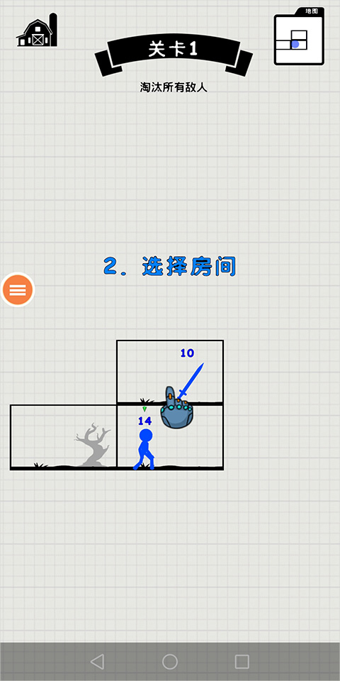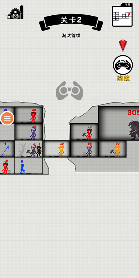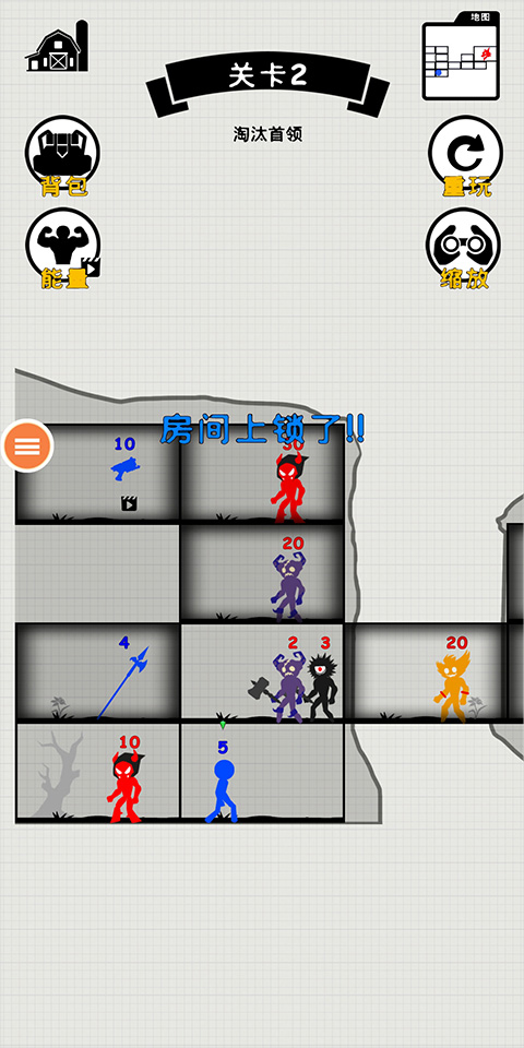5、此关卡中有很多房间,玩家可以对这些房间进行缩放和平移,以发现房间中更多的敌人,消灭这些敌人就可以再次升级。