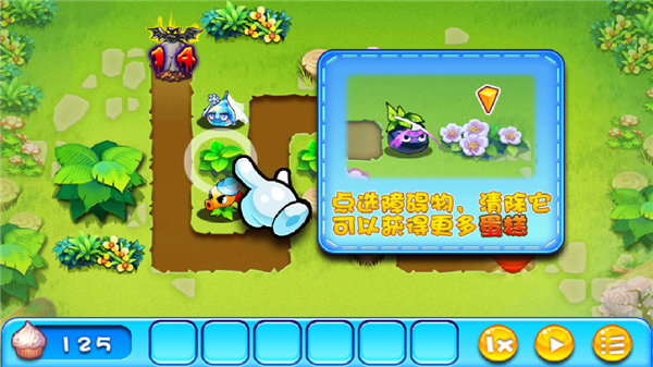8、每个场地都有很多的障碍物,你可以选择清除它们来获得更多的蛋糕。