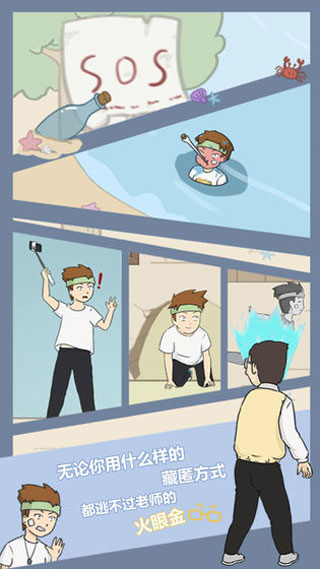 在这里玩家将扮演一名人民教师,通过对游戏场景内的线索寻找来找到逃课的小明同学,同时逃课是不可以的游戏关卡设计的非常幽默且也无厘头,这也为玩家的挑战带来的新鲜感和难度系数,而且无论玩家在这里失败或者成功都会得到一个成就,集赞全部的成就图鉴,不仅会让玩家得到一定的成就满足感,也满足了收集癖好,可谓是一个不错的设计,若有喜欢的朋友欢迎免费下载体验。