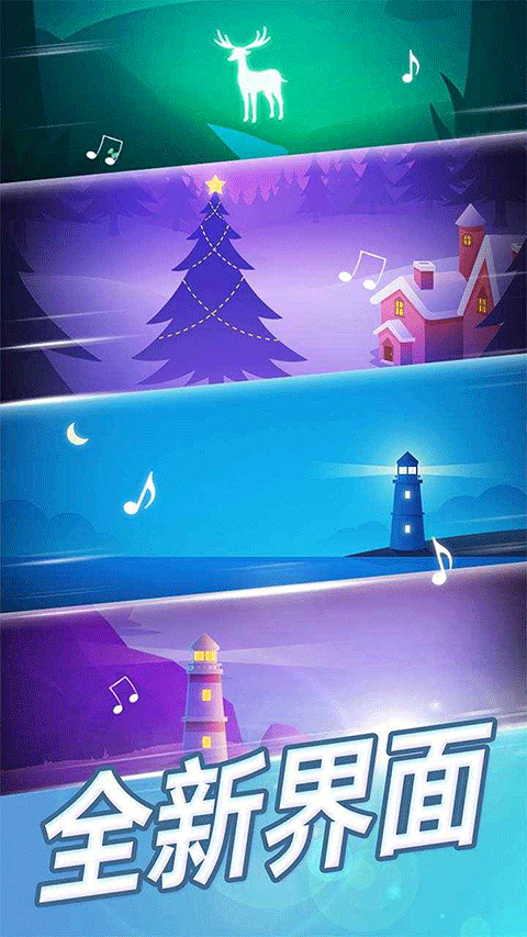 游戏还会根据玩家的演奏的歌曲个性化推荐同类型的音乐,弹得越多推得越准,随着游戏的升级还能够解锁不同的玩法,超多的皮肤、还能够进行游戏互动。全新音乐,让你体验专业钢琴家的弹奏乐趣,或者把自己的演奏分享给你爱的人!让指尖随着悠扬的音乐起舞!感兴趣的小伙伴快来下载试试吧!