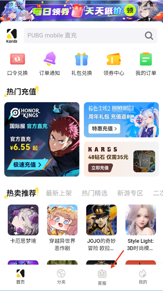 Kardz官方版是一款专注于海外游戏代充和账号交易平台,软件内拥有海量的游戏充值,基本涵盖了热门国际服手游,比如PUBG、暗区突围国际服、原神国际服等等,并且所有的充值都有折扣,充值价格普遍低于市场价,时不时还有满减券福利,同时支持多种支付渠道,方便国内用户操作。
