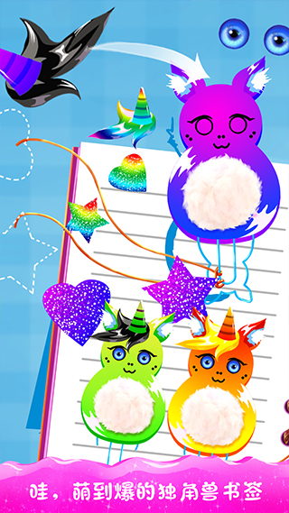 ●按住自己喜欢的样子去制作各种独角兽,然后去装扮你各种心爱的文具,变得更加漂亮。