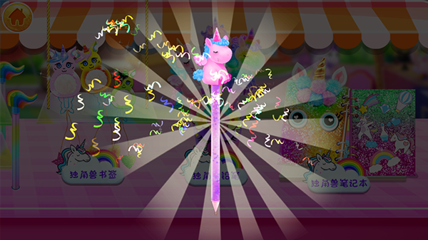 进入游戏后,根据游戏的任务制作文具。如:独角兽笔