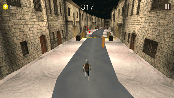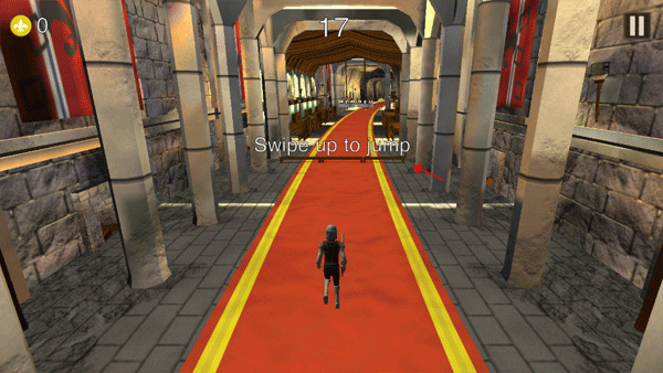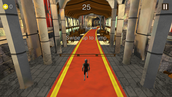 2、当骑士跑酷的路上出现障碍物时需要往上滑动来进行跳跃操作。
