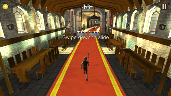 该游戏的玩法跟传统的跑酷非常的相似,玩家只要操纵骑士完成跳跃、滑动、回避、平板等动作来进行跑酷,而跳跃,是通过城堡暴风雨迷宫的方式来挑战你。骑士在跑酷的过程中会触碰到金币,玩家可以将金币购买道具和升级人物,让人物能够更快速地完成跑酷,喜欢跑酷类游戏的玩家可以下载体验一下!