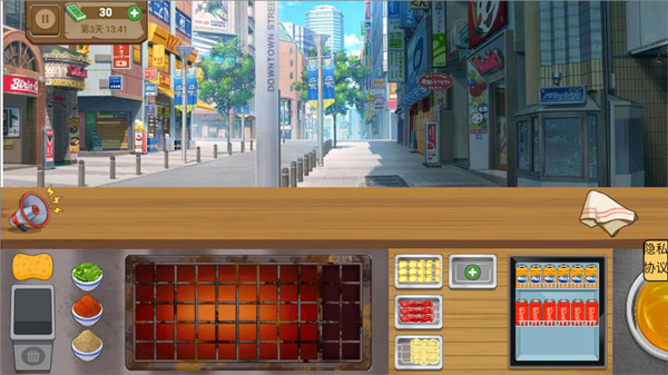 1、玩家打开幸福小卖部游戏,玩家可看到自己摊位的食材,可制作烧烤、薯条等食品;