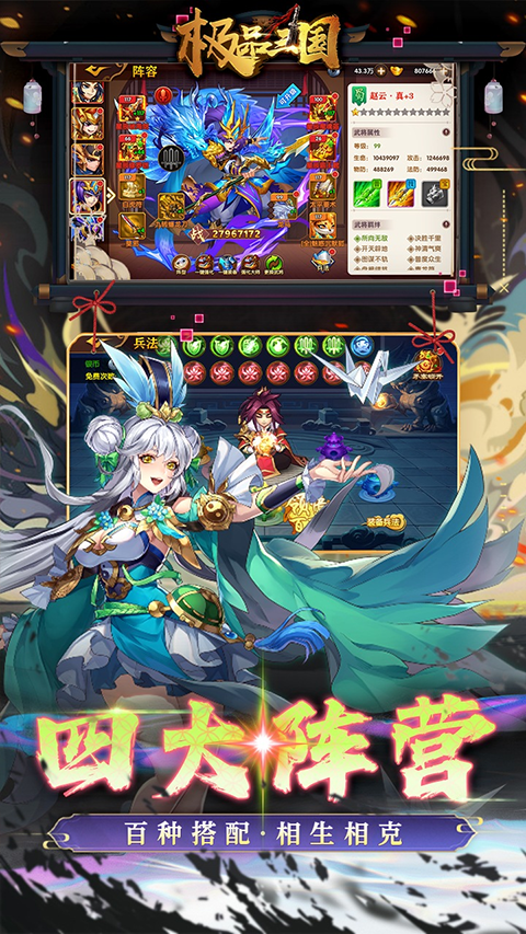 极品三国买断版是根据三国历史时代为题材而打造的一款放置回合制手游。在游戏内完美还原了三国历史名将,有大家熟悉的无双吕布,五虎上将的赵云、张飞、马超、黄忠、关羽,以及小霸王孙坚等,且玩家都可以通过免费的福利来获取他们并进行养成。