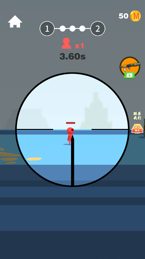 2、玩法非常简单,玩家需要通过手中的武器来击败敌人,点击屏幕即可开镜瞄准;