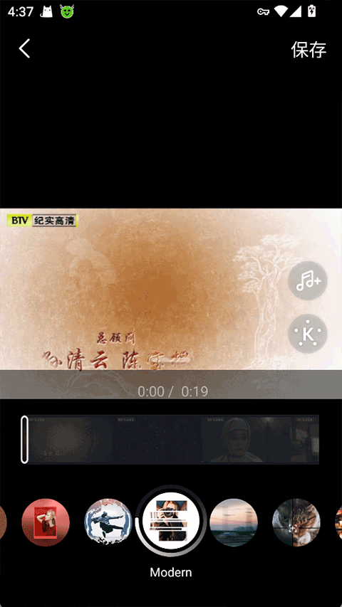 3、然后选择背景音乐,滤镜背景等就可以点击【保存】